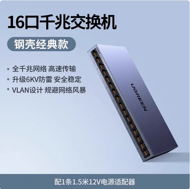 绿联工业交换机全千兆16/24口网络分线器网线光猫路由交换器以太网转换多接口扩展分流分路家用企业宽带监控