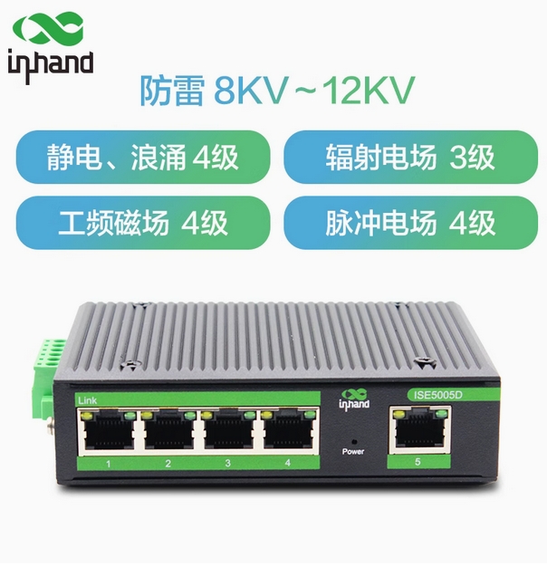 InHand映翰通5口8口16口工业级以太网交换机全千兆非网管型ISE5005D网络监控分流器防雷宽温即插即用导轨