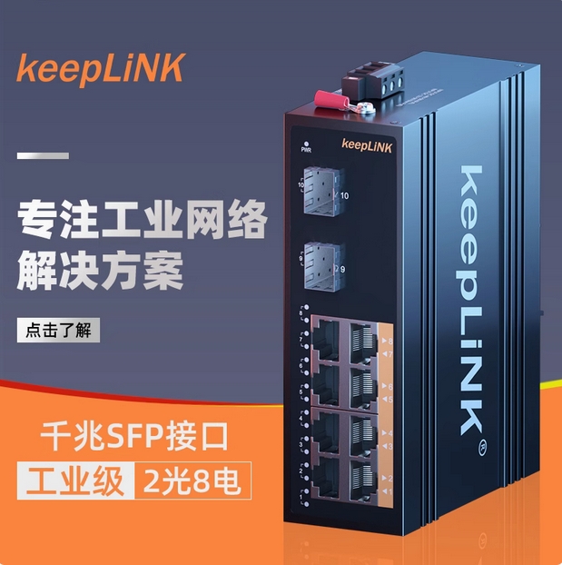 keepLiNK友联工业级以太网交换机千兆2光8电非管理型导轨式 KP-9000-45-2GX8GT