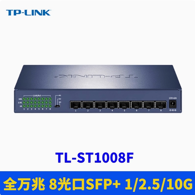 普联TP-LINK TL-ST1008F万兆8口光纤交换机SFP+全光口10G/2.5/1Gb高速网络模块钢壳免配置即插即用扩展分线器