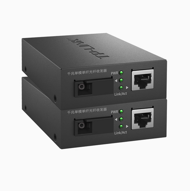普联TP-LINK TL-FC311A/B-3一对光纤收发器套装千兆单模单纤芯SC光电转换模块网络监控双向3km一光一电5V-12V
