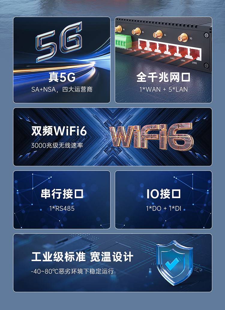 5G插卡工业路由器全网通高速联网双频高通wifi6 全千兆6网口组网终端RTU 支持AP远程运维 ER5000