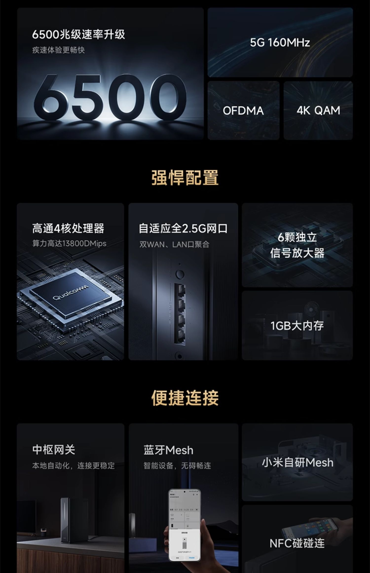 小米Xiaomi路由器BE6500Pro路由器WiFi7家用千兆高速全屋覆盖学生宿舍大户型全千兆端口5Gwifi