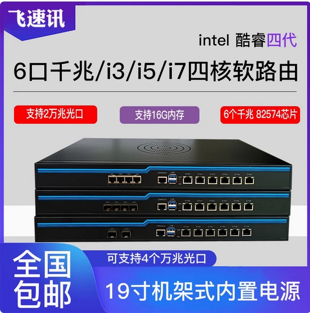 6口4代i3i5i7四核软路由千兆+2万兆光口工控企业路由器机架式X86