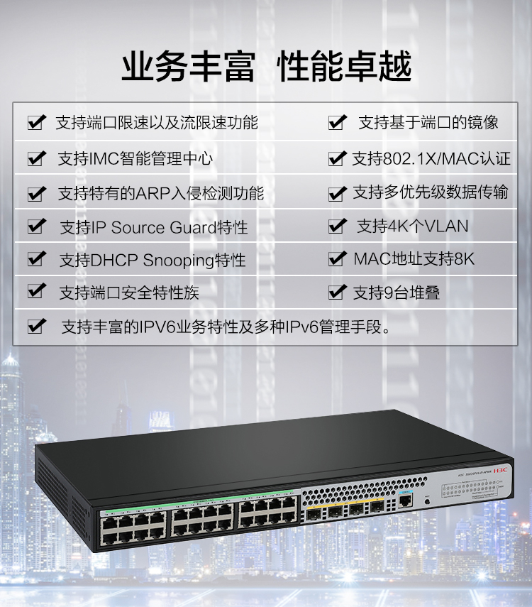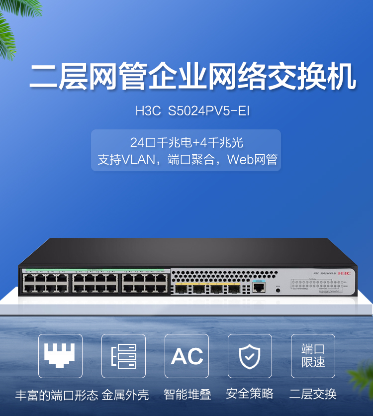 H3C新华三S5024PV5-EI24口千兆电4千兆光纤口企业级网络交换机