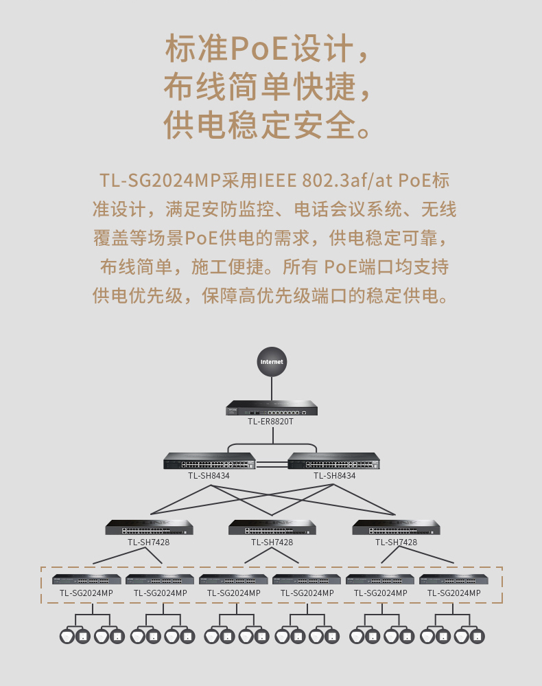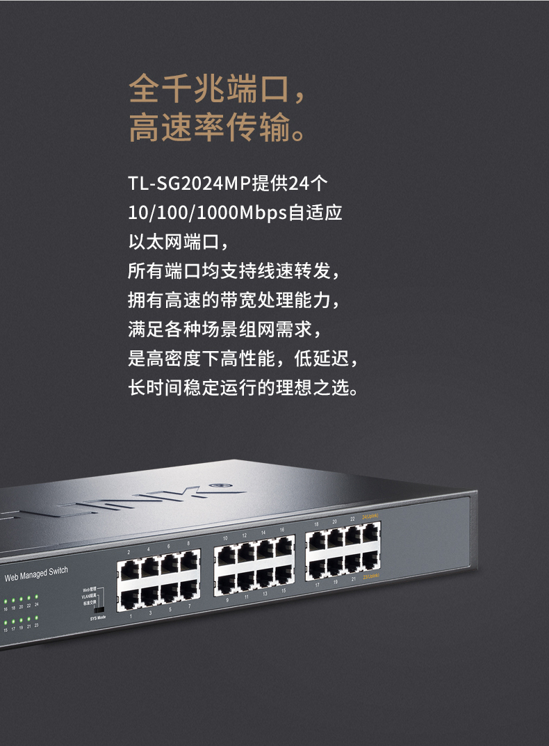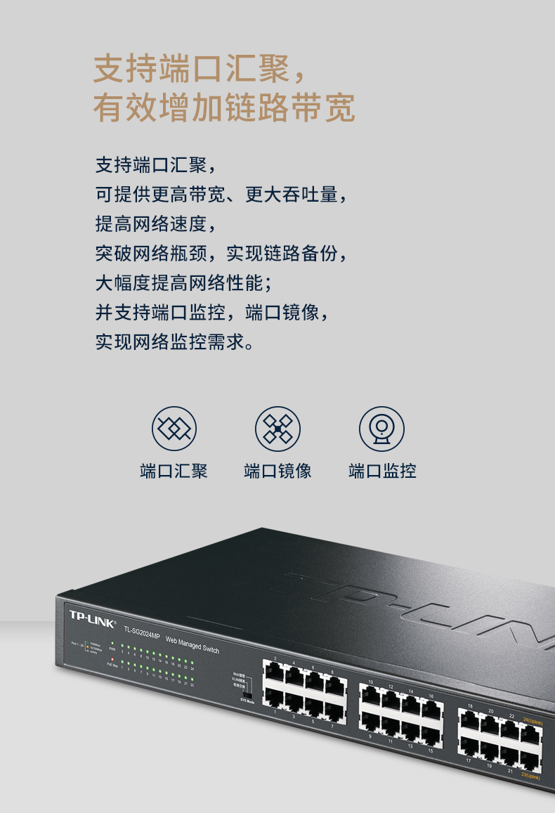 TP-LINK16口poe交换机千兆24口标准48v供电8/10路监控专用SG1218P