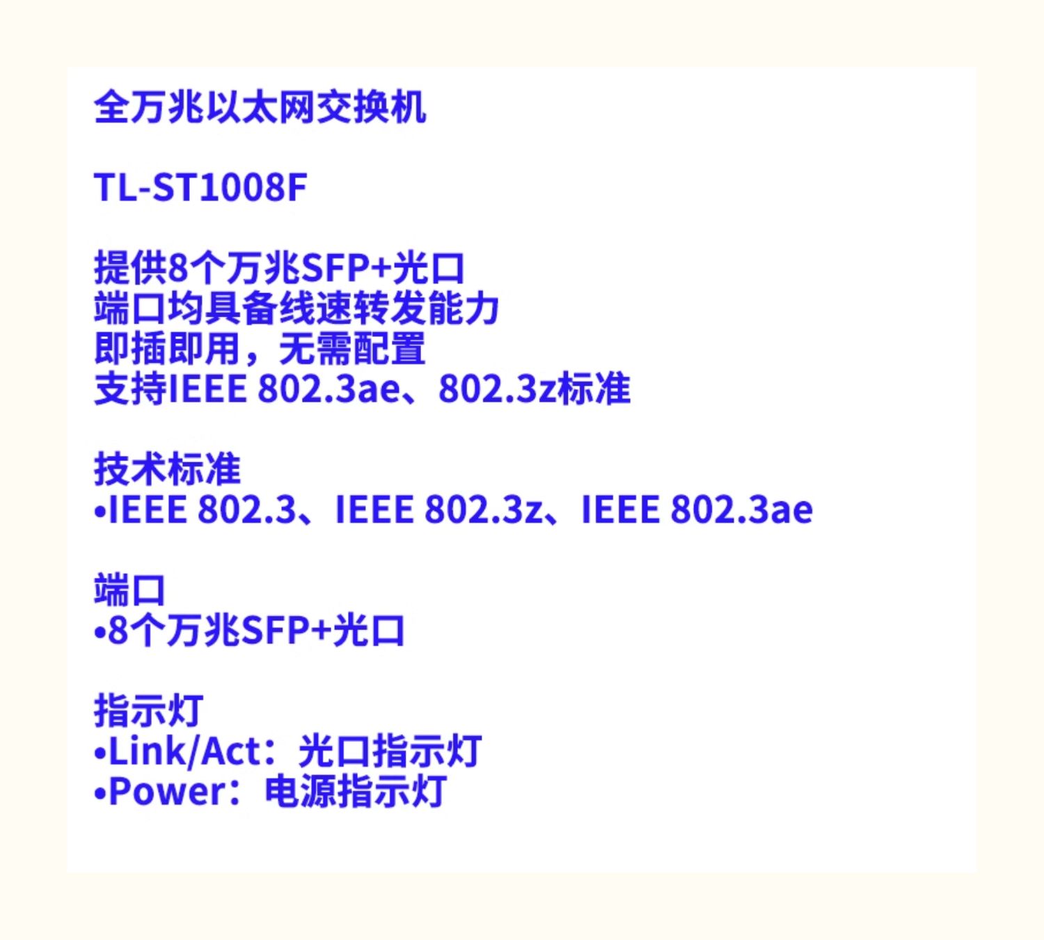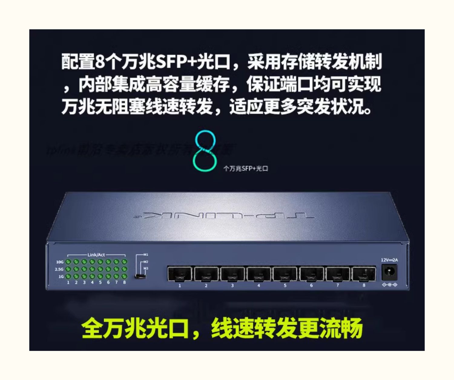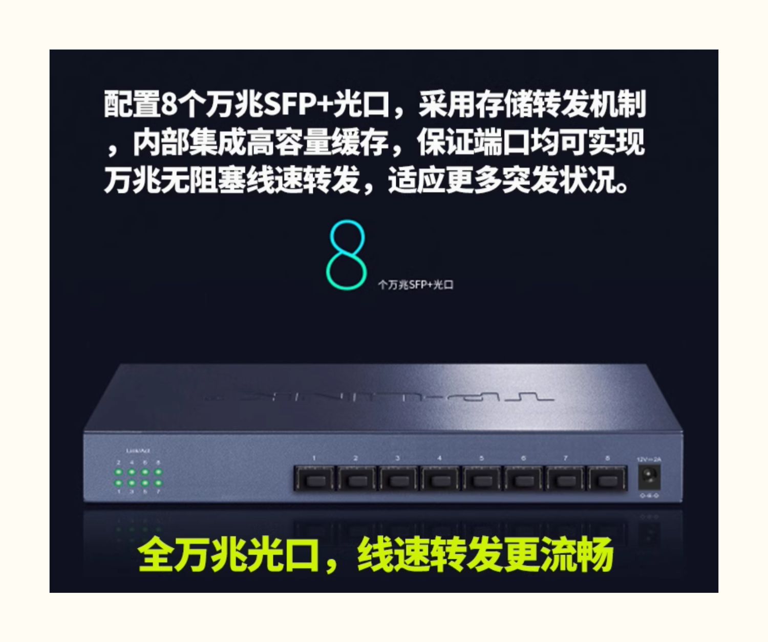 普联TP-LINK TL-ST1008F万兆8口光纤交换机SFP+全光口10G/2.5/1Gb高速网络模块钢壳免配置即插即用扩展分线器