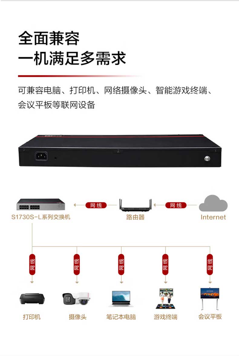 华为数通智选16口千兆以太网交换机S1730S-L16TR-A机架式16电口网线分线器网络分流器集线器非网管家用企业级