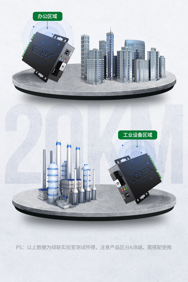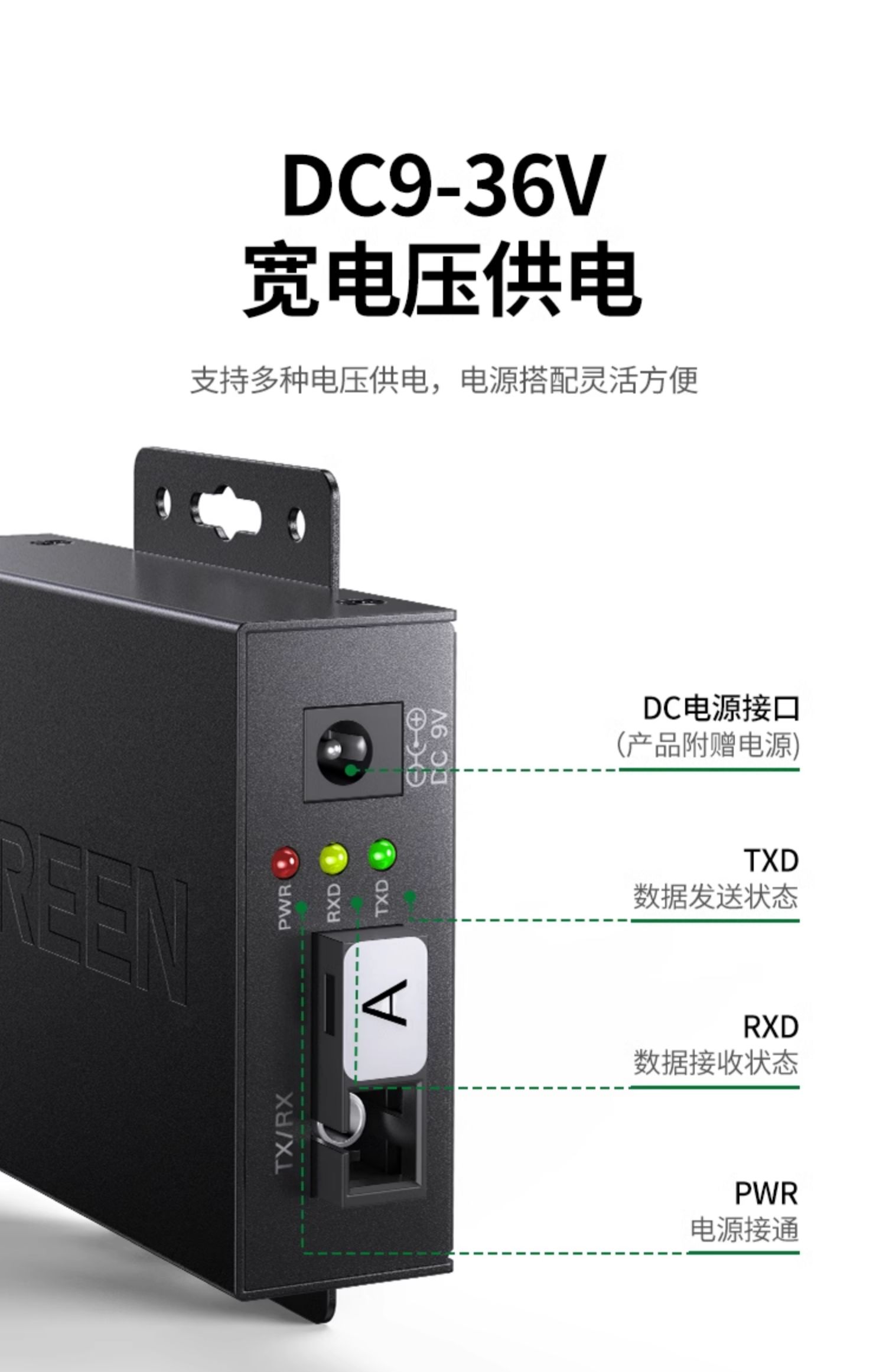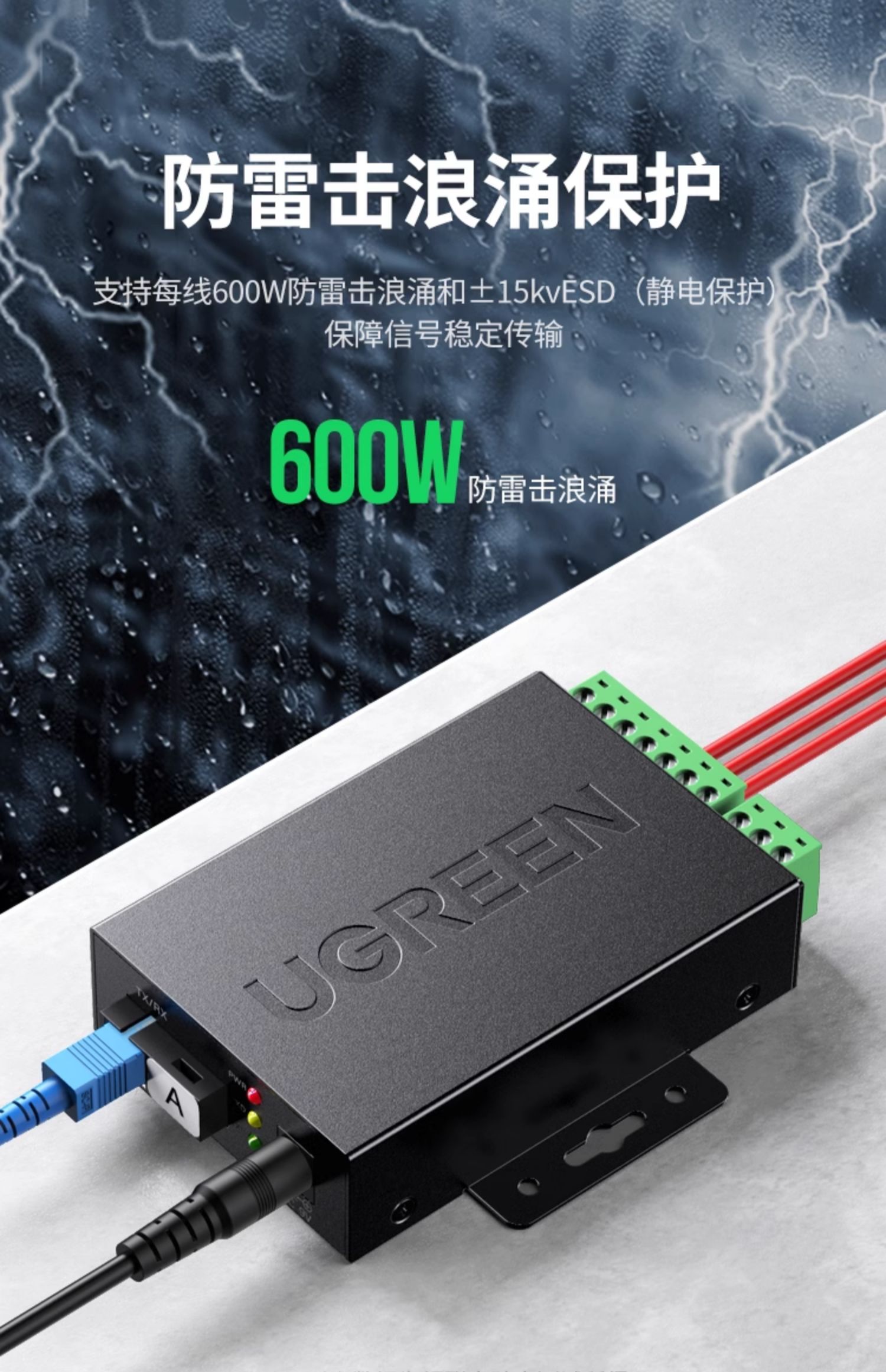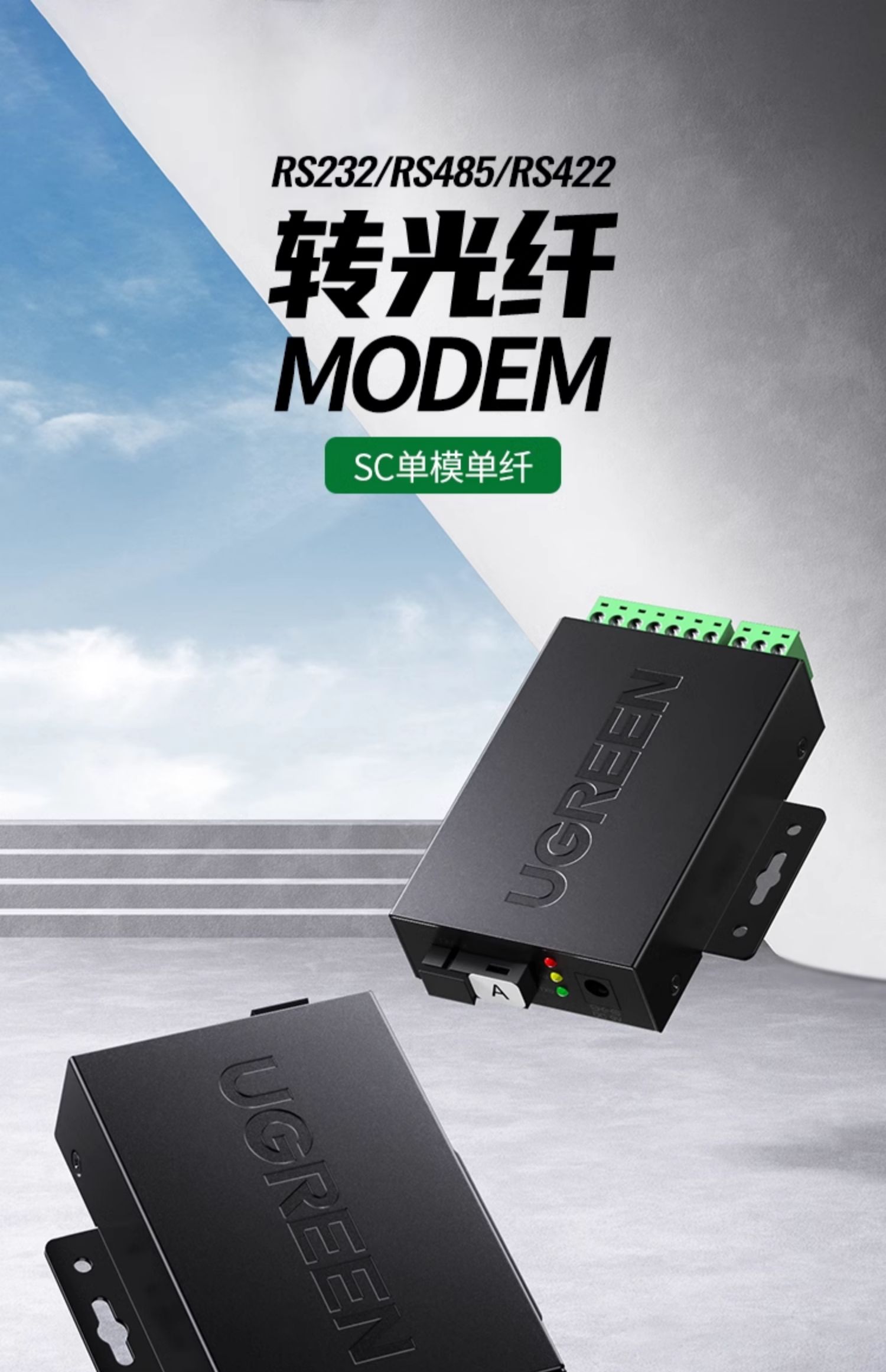 绿联RS485/232/422转光纤收发器光端机MODEM串口转单模单纤防雷SC接口转换器宽电压双向传输工业级调制解调器