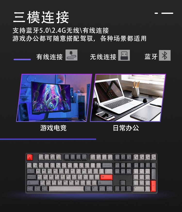 DS静音无声复古机械键盘游戏电竞三模无线蓝牙有线专用Mac办公Win