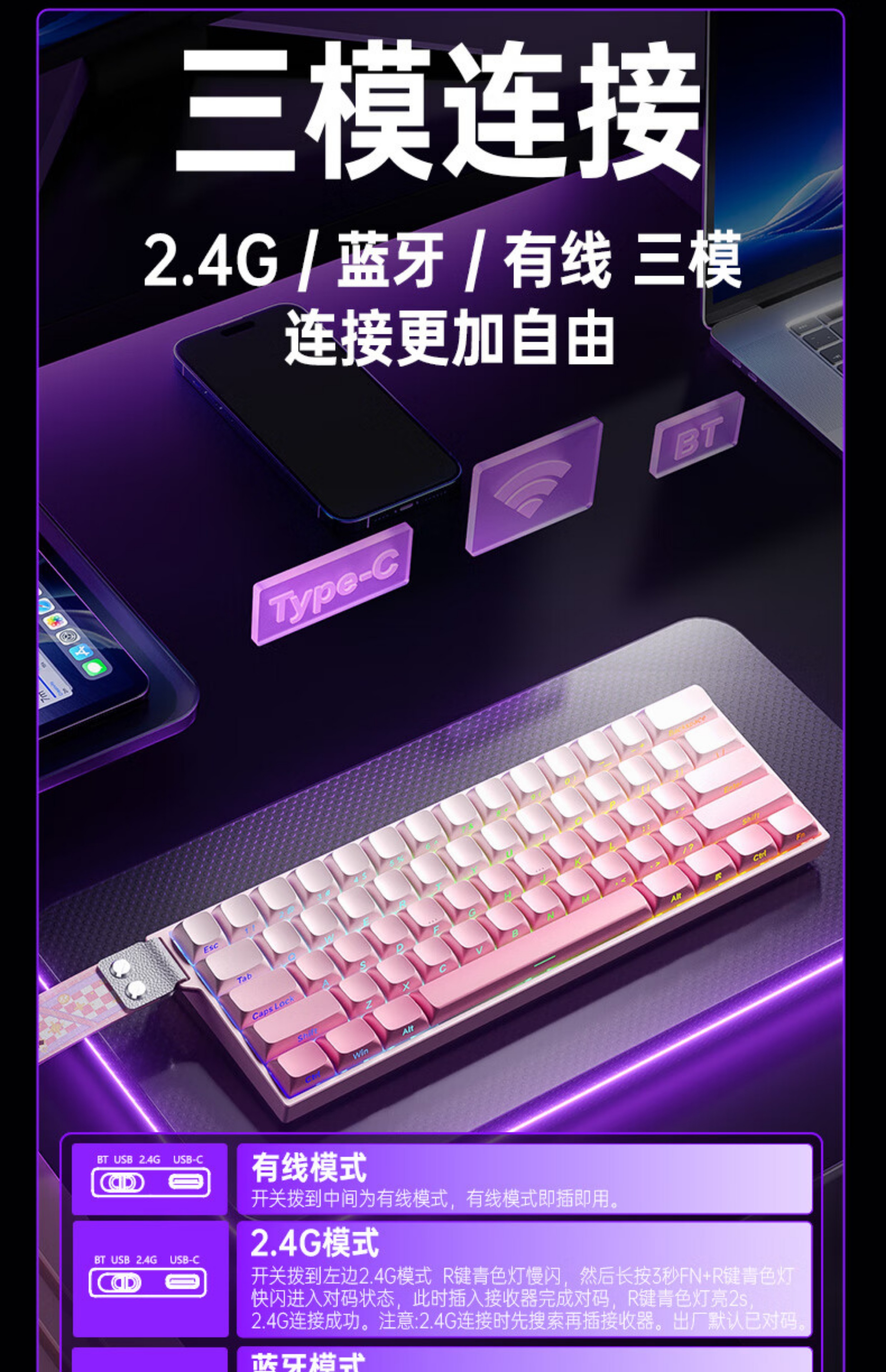 狼蛛MINI/Win60三模磁轴键盘机械无线有线电竞游戏FPS打瓦低延迟
