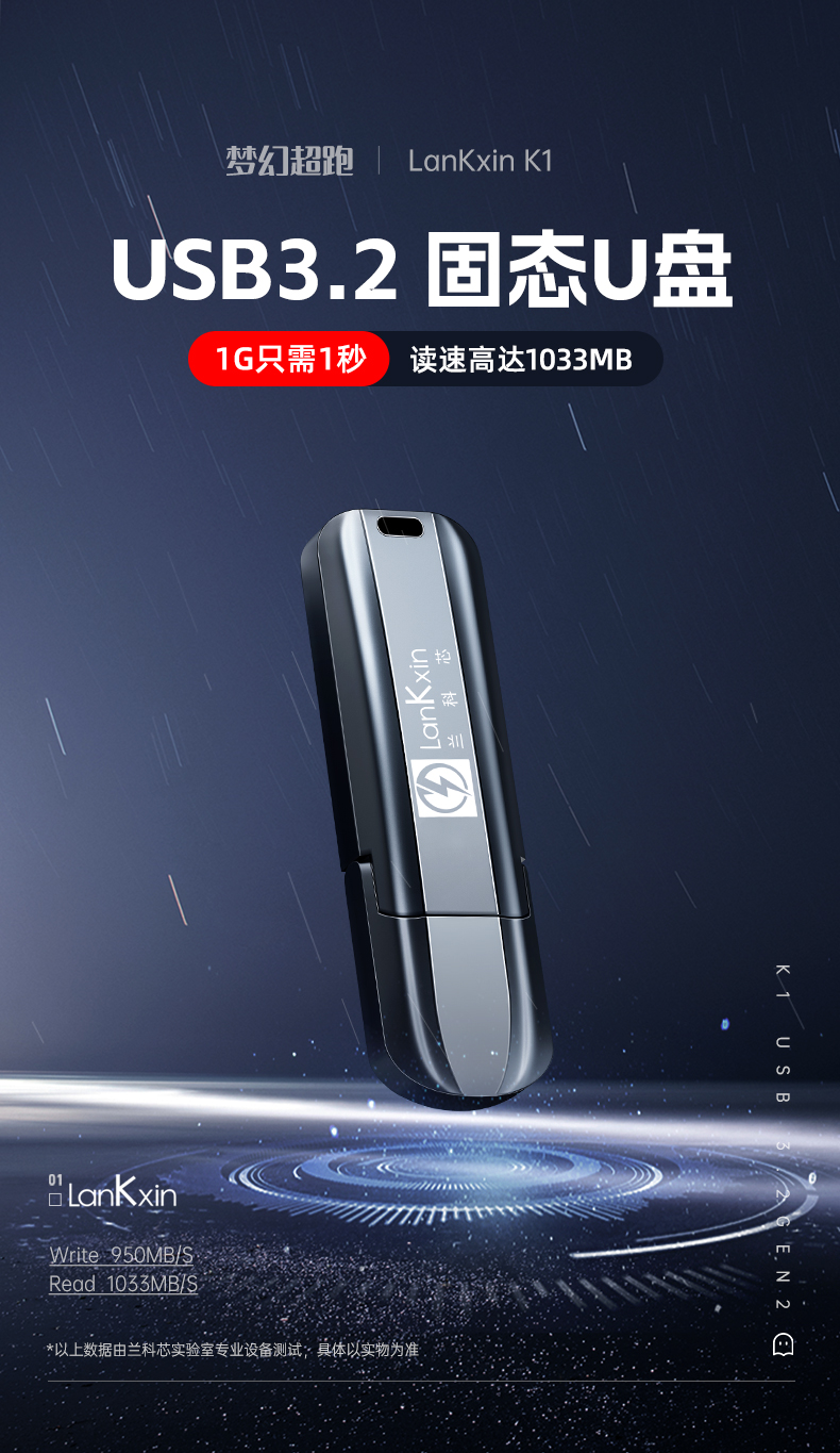 兰科芯K1固态优盘吉翔PE电脑装机u盘纯净系统W7/8/10/11集成驱动