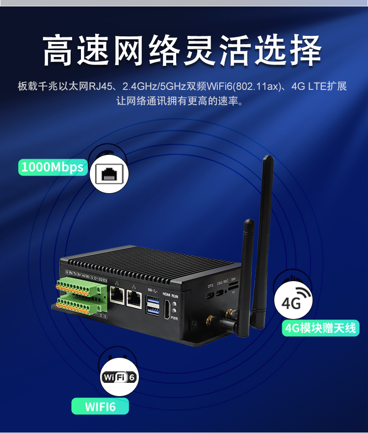 瑞芯微RK3576国产化工业级AI边缘计算智能盒 8 核CPU 6TOPS 算力