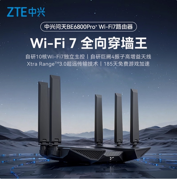 ZTE中兴问天路由器BE6800Pro+双2.5G网口WiFi7千兆双频路由器全屋大户型子母路由高速穿墙游戏电竞mesh组网