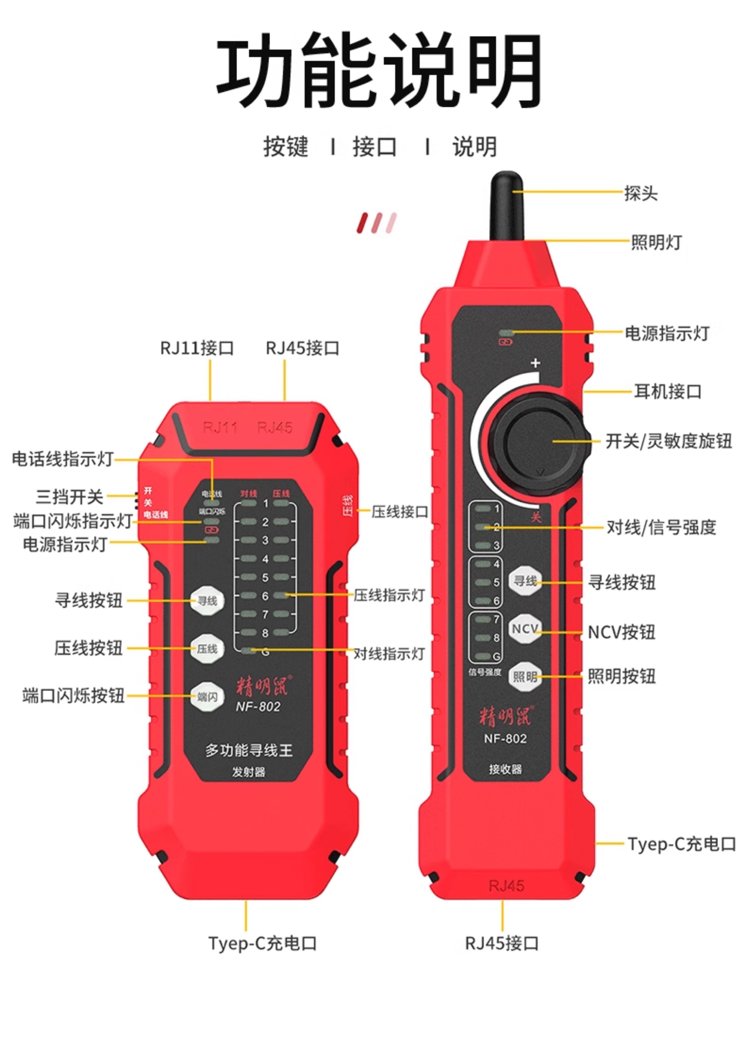 充电精明鼠NF802寻线仪网络测试仪网线检测器抗干扰POE巡线测线仪