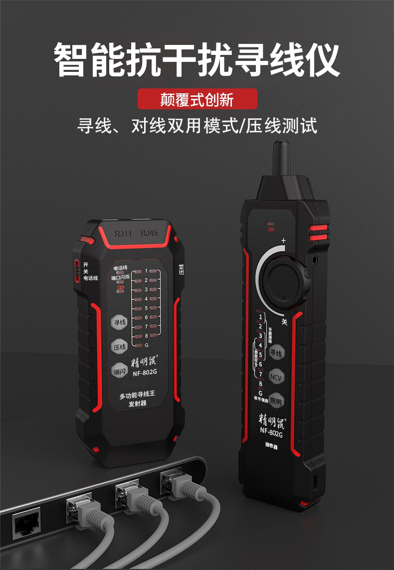 精明鼠网线寻线仪网络测试仪灵NF-802G多功能巡线测线仪充电电池